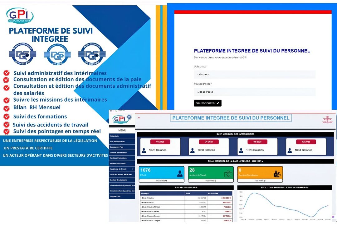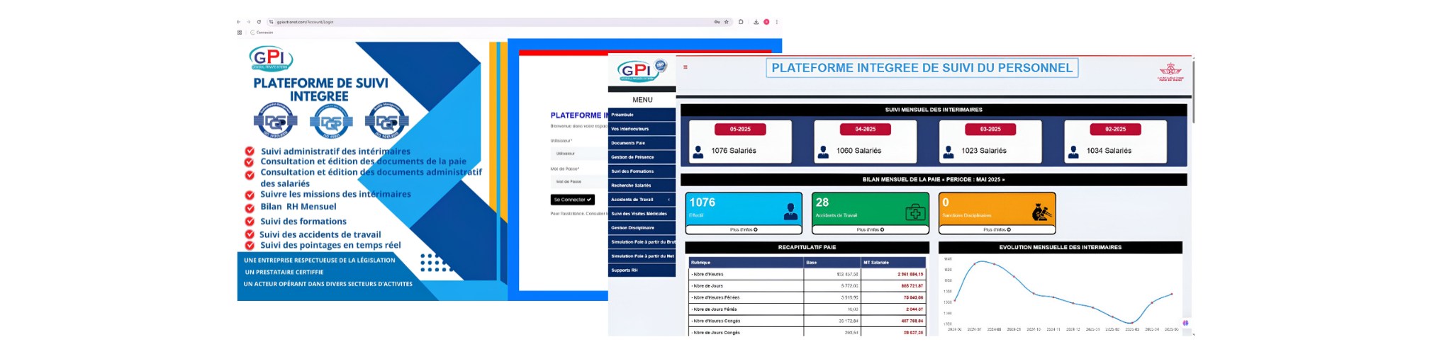 Grâce à une plateforme digitale performante, nous assurons une gestion efficace des intérimaires, des contrats, de la paie, des accidents de travail, des visites médicales et des formations